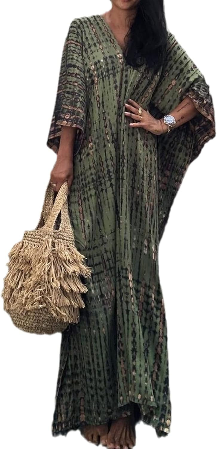 Vestidos Mumu de talla grande para mujer, caftán bohemio con mangas de murciéla