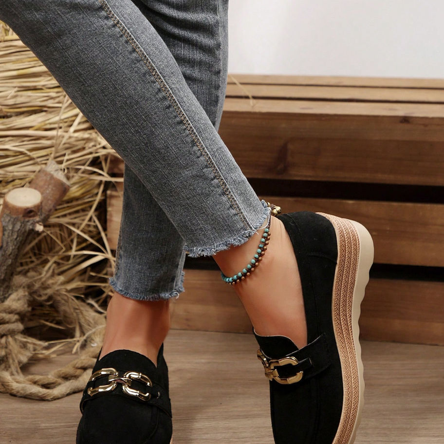 1 Pair Women's Slip-On Loafers, Thick Sole Retro Casual Shoes, Solid Color With