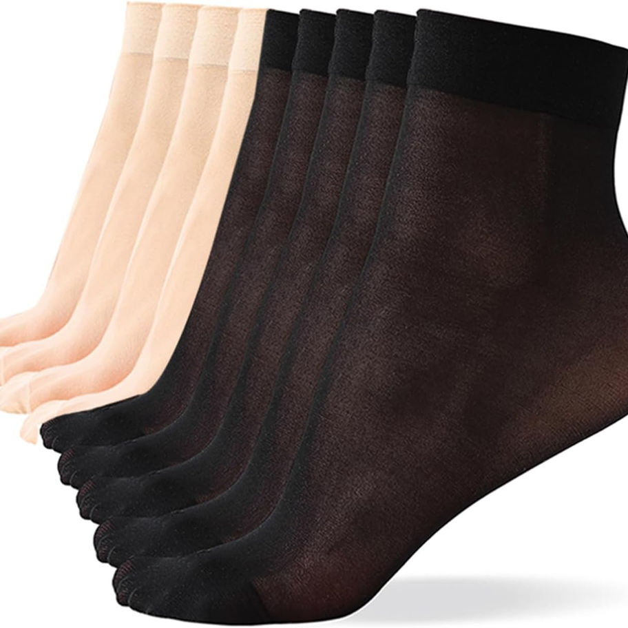 【Fácil de combinar】Estos calcetines son los calcetines negros perfectos para mujeres, diseñados como elegantes calcetines de vestir para cualquier ocasión. Úsalos con faldas y tacones: sus calcetines transparentes para mujer con diseño de tobillo transitan sin esfuerzo de entornos profesionales a informales.