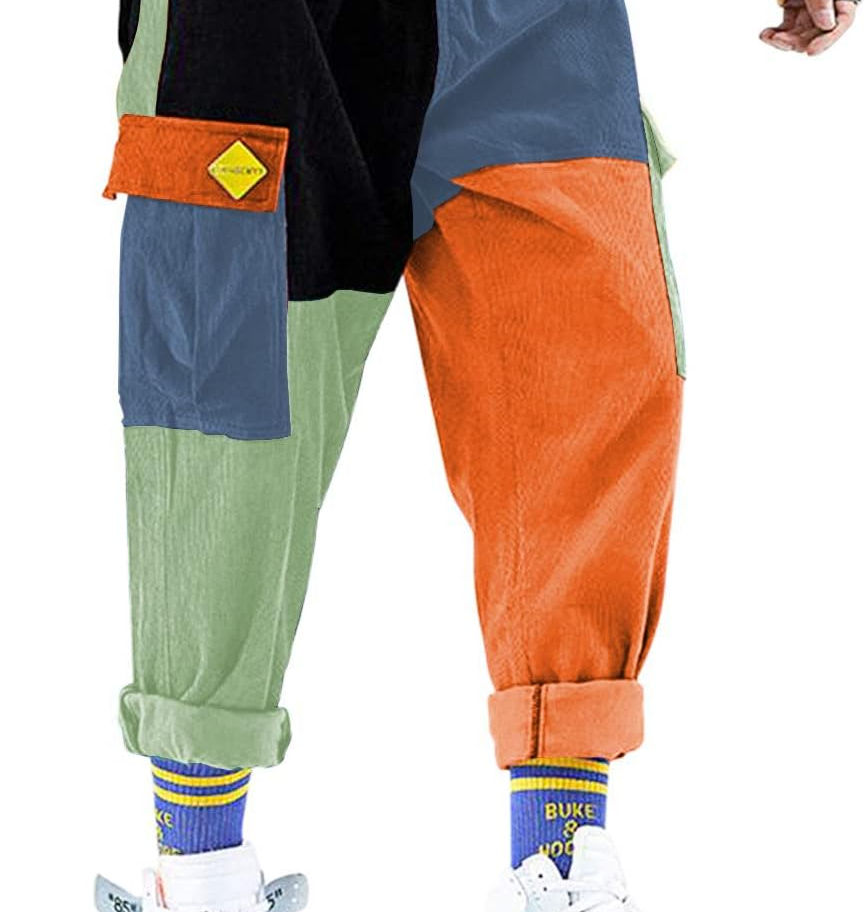❤️❤ 【Características de diseño de estos pantalones para hombre y mujer】: Esos pantalones casuales con diseño de patchwork de colores para hombre cuentan con un estilo retro de bloques de color. Tienen un diseño original, estilo retro, sencillo y colorido, cintura con cordón ajustable, múltiples bolsillos en los muslos izquierdo y derecho, bolsillos tipo cargo multiusos para diversas herramientas y equipo.