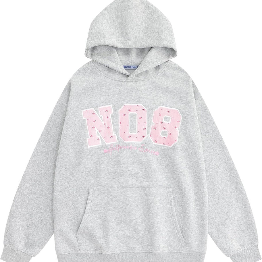 Diseño: Número floral bordado, estampado de letras, dobladillo y puños acanalados, bolsillo canguro, manga larga, sudaderas con capucha