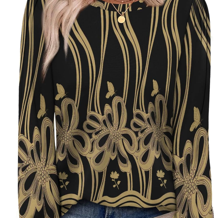 Alaroo Camisas de manga larga para mujer, blusas con cuello redondo y estampado