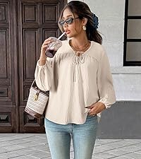 AlvaQ Blusas de talla grande para mujer, con lazo frontal, manga abombada, cuel