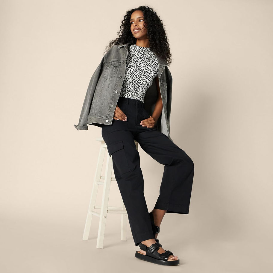 Amazon Essentials Pantalón cargo caqui de tiro alto y ajuste regular para mujer