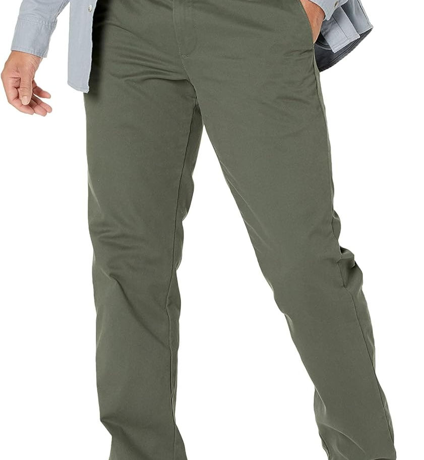 Si te gustan los pantalones delgados Dockers modernos, te invitamos a probar el encaje y estilo de nuestros chinos antiarrugas Amazon Essentials.