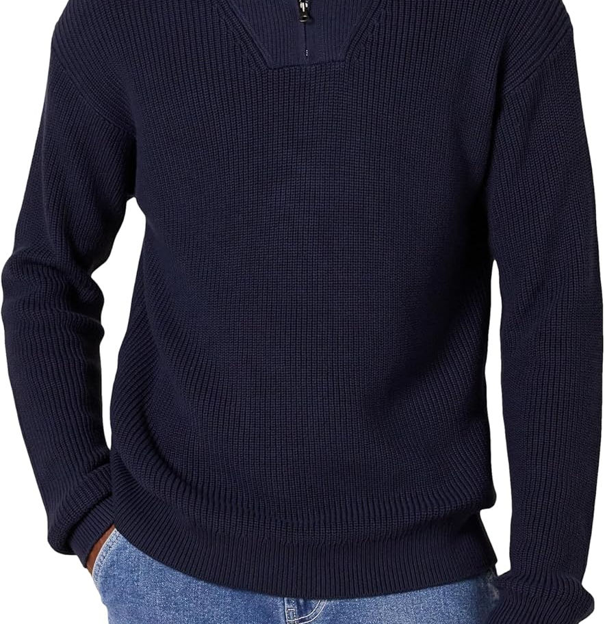 Amazon Essentials Suéter de punto acanalado con cremallera corta para hombre