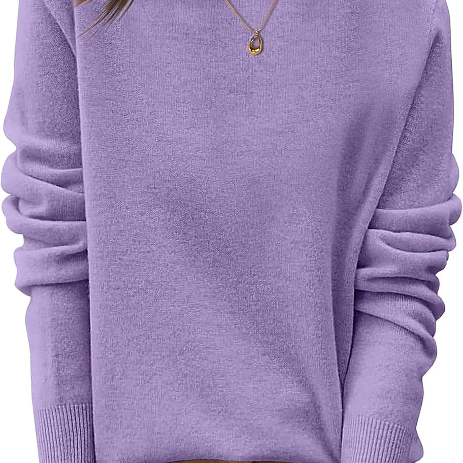 Características: suéter 100% lana para mujer, diseño clásico de manga larga con cuello redondo, estilo casual básico. Este suéter de cachemira es suave y cálido, perfecto para el trabajo, viajes, uso diario o salidas casuales.