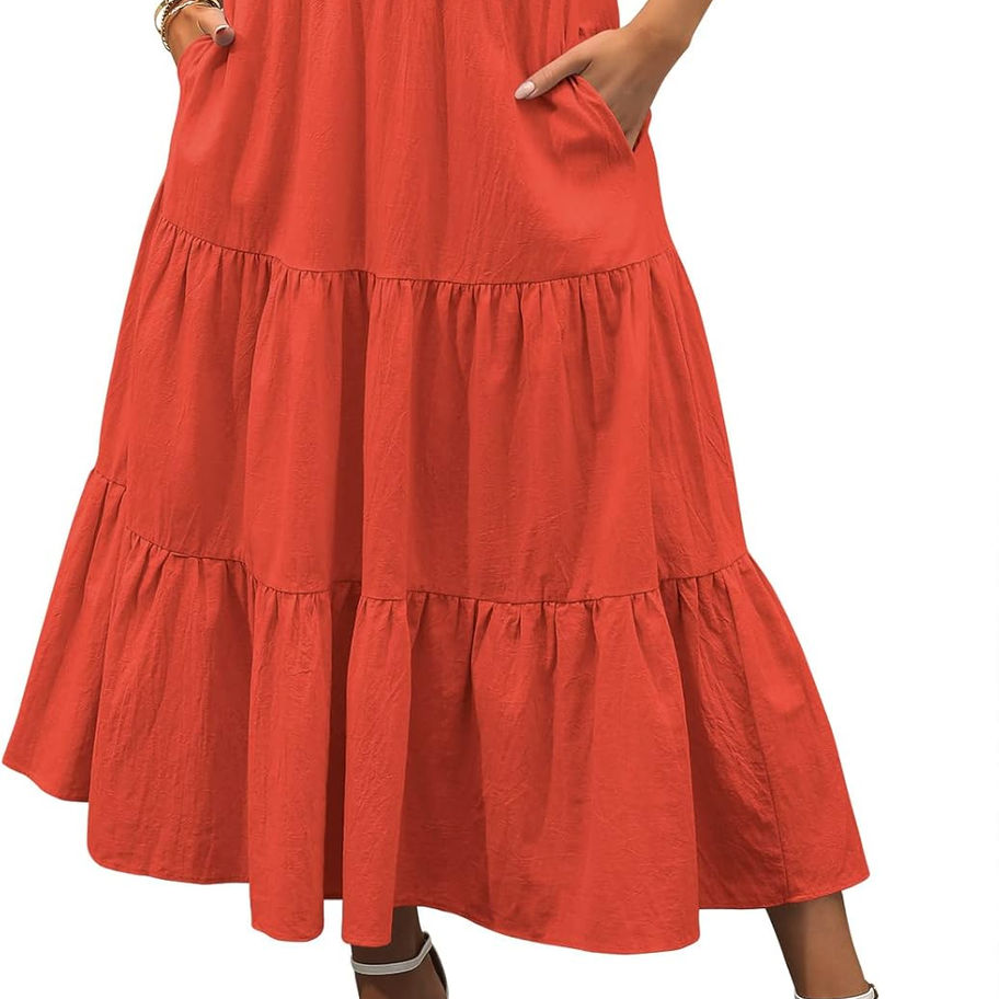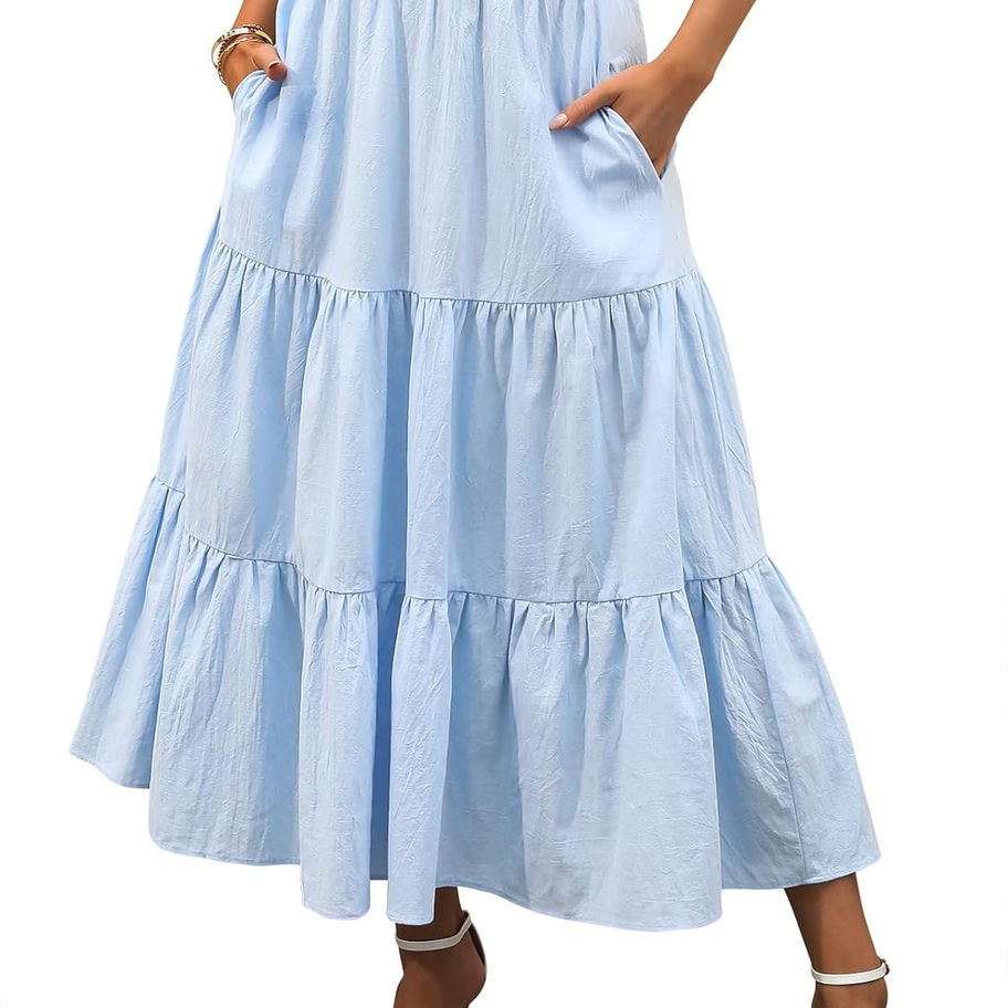 Características: vestido de falda de playa, mezcla perfecta de diseño bohemio floral y de color sólido, con una cintura elástica, dobladillo con volantes en niveles, perfecto para fiestas, salidas a la playa de verano, vacaciones, viajes o ropa casual.