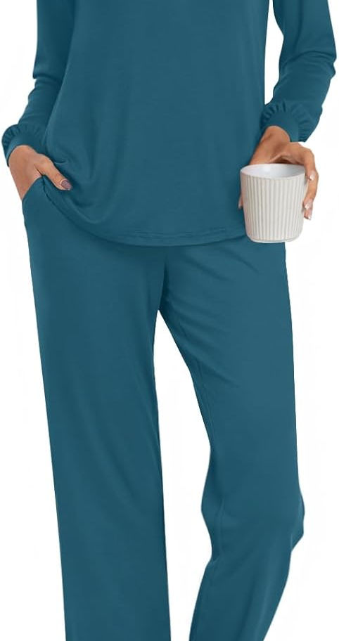 Diseño básico a la moda: bonitos conjuntos de 2 piezas; camisetas de manga larga; ropa para dormir suave; elegante diseño con detalle de cuello en V. Pantalones de cintura elástica a juego con dos bolsillos en ambos lados para poner teléfonos celulares o pequeños aperitivos. Estilo informal suelto, cómodo, elegante y sencillo.