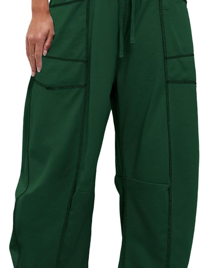 Athlisan Pantalones holgados estilo barril, para mujer, pierna ancha, con cordó
