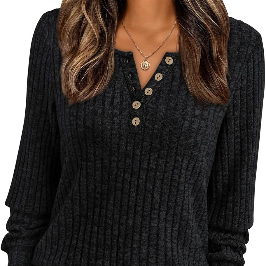 AUTOMET Camisas Henley de manga larga para mujer, estilo casual, ligera, tipo t