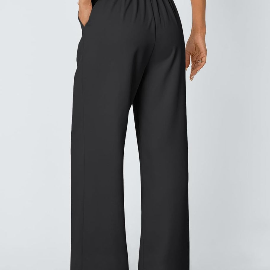 Cintura trasera elástica y pierna ancha: el estilo de pierna ancha es muy favorecedor. La cintura trasera elástica garantiza un ajuste flexible y cómodo para varios tamaños de cintura y tipos de cuerpo. Estos pantalones ofrecen un aspecto moderno y moderno que funciona perfectamente tanto para salidas casuales como para entornos profesionales.