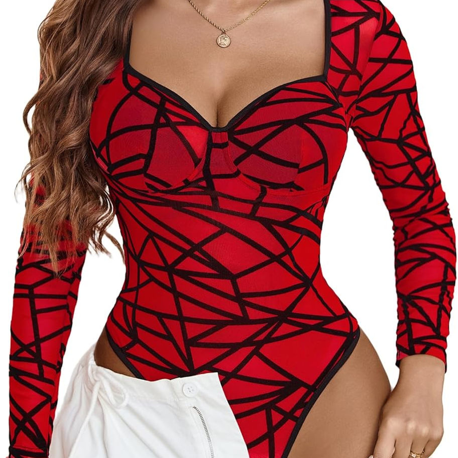 Material: el body de malla para mujer está hecho de 95% poliéster y 5% elastano. Tejido de malla elástica, suave, cómodo y transpirable