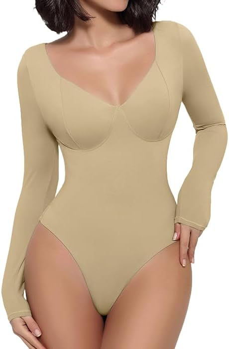 Avidlove Body para mujer, manga larga, doble forro, sin mangas, cuello en V, bo