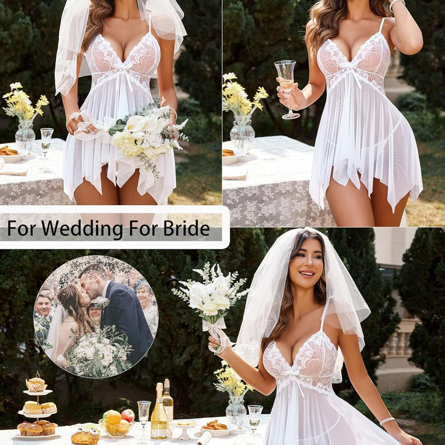 Avidlove - Lencería tipo babydoll para mujer, de encaje, ropa de dormir tipo Bo