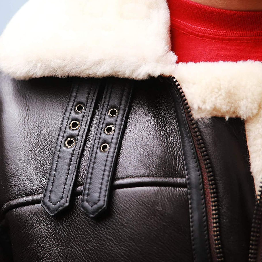 Diseño único: el abrigo de cuero de invierno está hecho de cuero auténtico puro. La chaqueta piloto para hombre tiene un diseño de cierre de cremallera. La chaqueta de aviador para hombre tiene piel de oveja gruesa y flexible con una capa exterior con acabado de piel de napa junto con lana de oveja pesada. La chaqueta B3 tiene una cremallera frontal resistente sobre una solapa de viento con cierre de doble hebilla. Las chaquetas de piel de oveja tienen correas ajustables con cinturón en la cintura para ajustar tu chaqueta y bolsillos laterales para calentar las manos para mantener tu mano caliente.