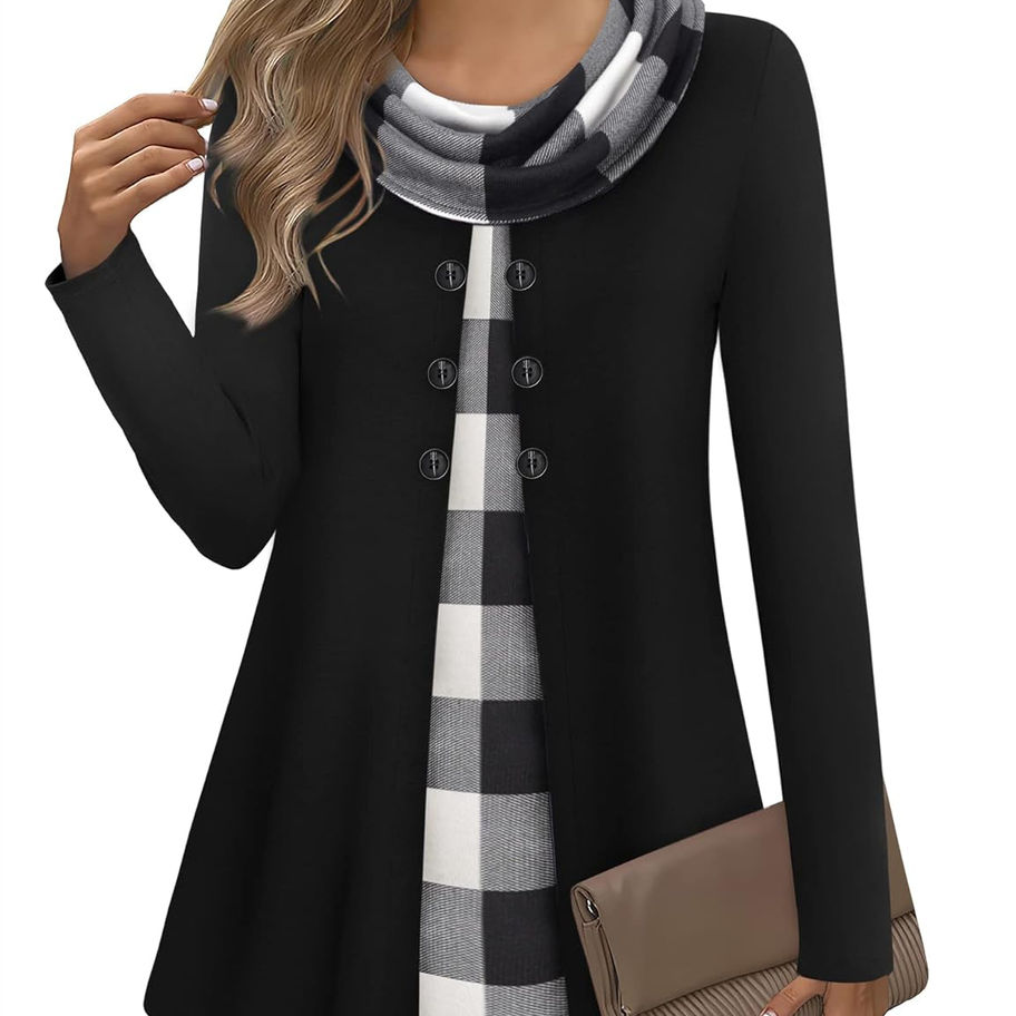 The classic warm cowl neck and the splicing design with buttons gives you a modern look. It's an essential shirt dresses in your wardrobe.