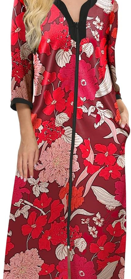 Adecuado para cualquier persona: las batas con cremallera para mujer de talla grande pueden adaptarse a todos fácilmente, ya sea que seas pequeña o grande. La bata también es ideal para maternidad/después del parto, así como el material es elástico, y la cremallera baja hasta el final, lo que funciona muy bien con la lactancia materna. Bata de media manga con cremallera que es larga para las pantorrillas, lo que puede evitar el aire frío en el aire acondicionado y evitar el frío después del parto.