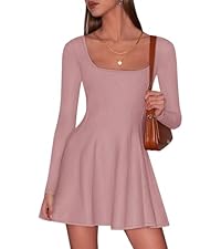 FEATURES: S=US 4-6, M=US 8-10, L=US 12-14, XL=US 16-18, XXL=US 20 / Mini Dress / Short Dress / Warm Knit Fabric / Square Neck Dress / Long Sleeve Dress / A-Line Dress / Swing Dress / High Waist / Solid / Comfy To Wear / For Spring, Fall, Winter