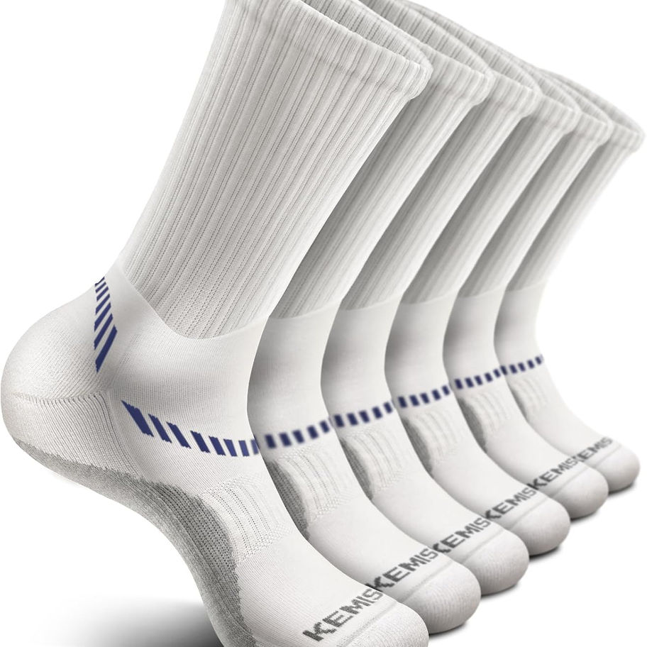 Compresión: con una densidad de costura adecuada, su composición de material particular de hilos mezclados con elastano proporciona a estos calcetines de tripulación una elasticidad adecuada y una buena compresión a los pies, lo que puede promover el flujo sanguíneo para una experiencia más cómoda