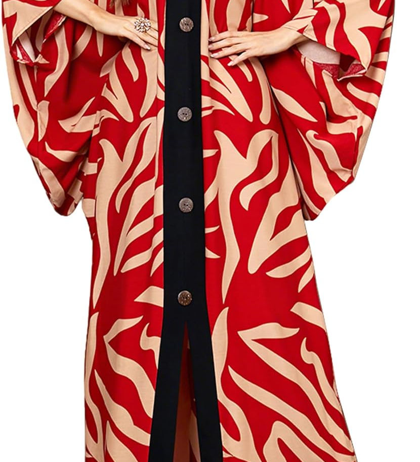 Diseño del vestido Caftan: vestido caftán con estampado vibrante para mujer, diseño bohemio y chic. Cintura relajada y aberturas laterales para mayor comodidad y elegancia, tela ligera cubre elegantemente, cobertura versátil: playa, piscina, cena ¡Confianza en cada ambiente!