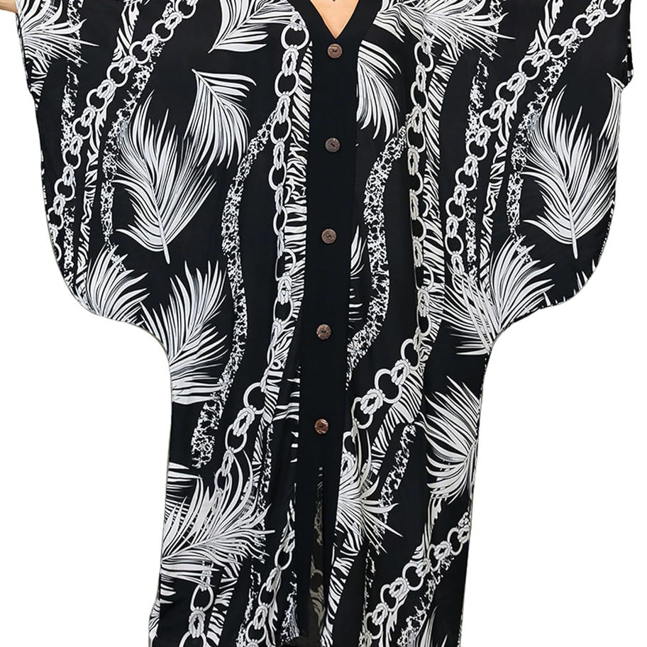 Vestido caftán de talla grande: el vestido caftán está diseñado con escote en V profundo y mangas de murciélago, se adapta a tallas de EE. UU. S, M, L, XL, 2XL, con un busto de hasta 57 pulgadas (56.7 in) y una longitud de 53.1 pulgadas (52.0 in).