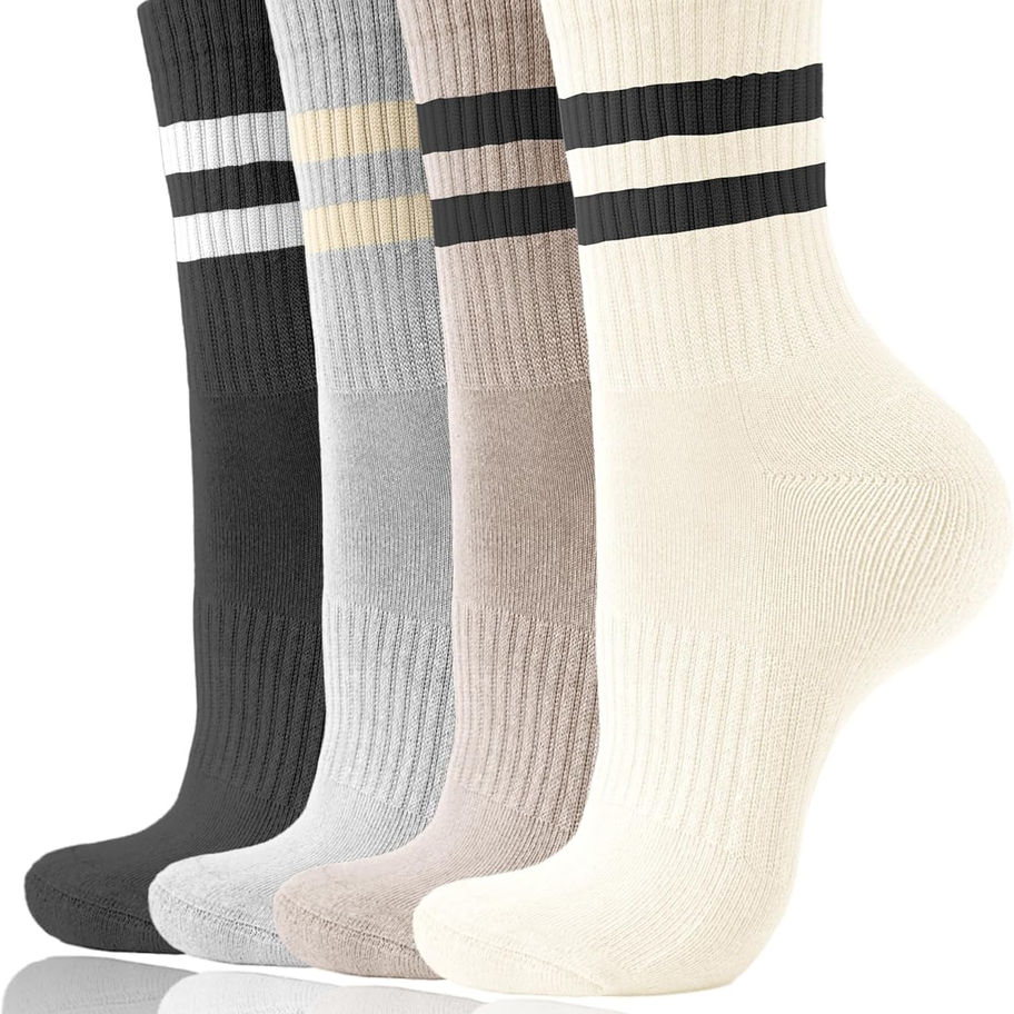 【Ajuste clásico y seguro】Hechos para adaptarse a las tallas de mujer de EE. UU. 5 a 11, estos calcetines a rayas se adaptan a la mayoría de mujeres y niñas. Los puños elásticos acanalados ayudan a mantenerlos en su lugar sin deslizarse ni clavarse. Disponible en versiones acolchadas o no acolchadas para comodidad durante todo el día que mantiene tus pies frescos y secos.