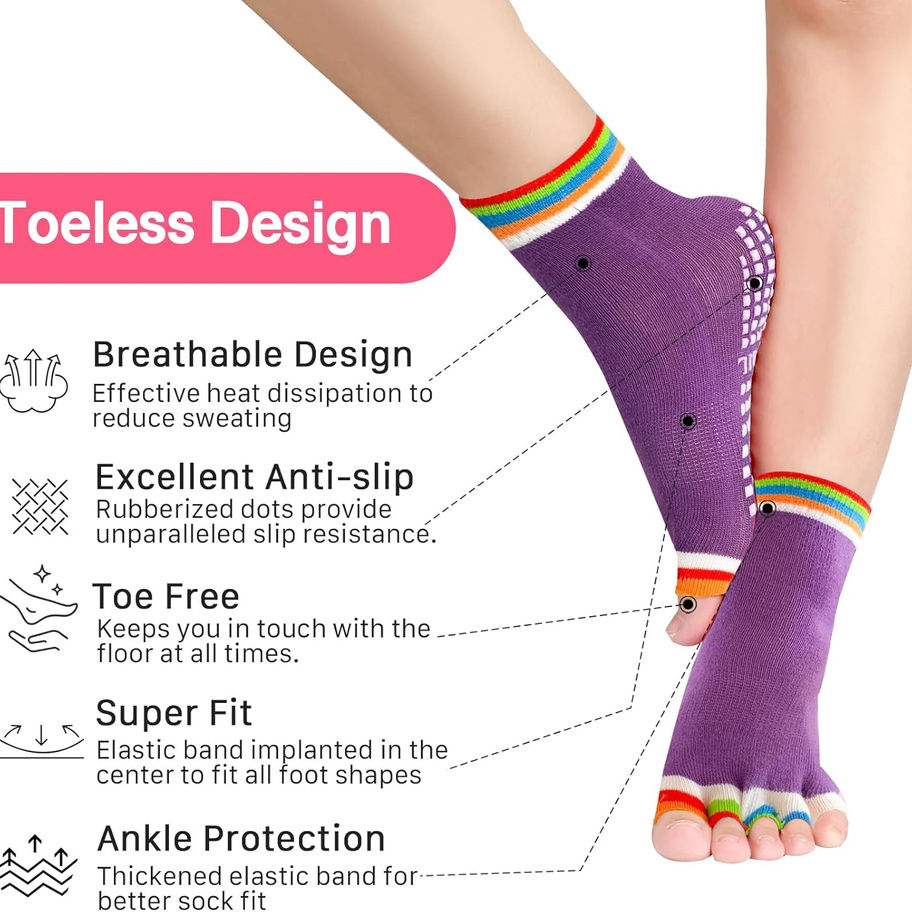 Fácil de usar: cada dedo se desliza a través de aberturas individuales como guantes, mejorando el equilibrio y la sensación del suelo durante el yoga/pilates mientras evita ampollas de fricción.