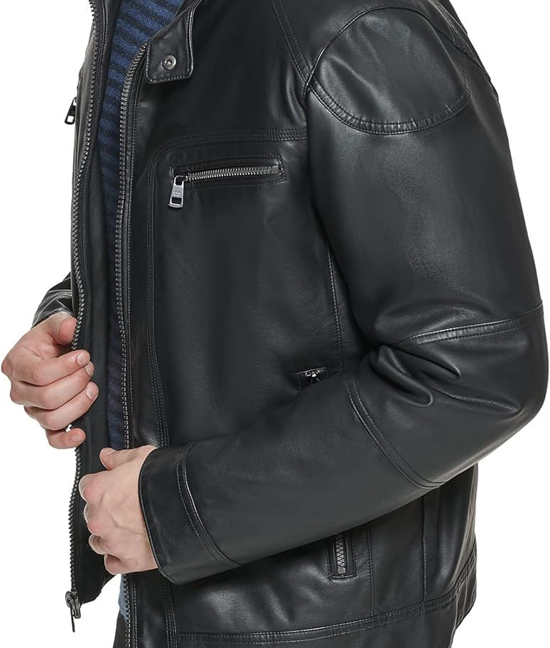 Calvin Klein Chaqueta de moto para hombre con capucha extraíble