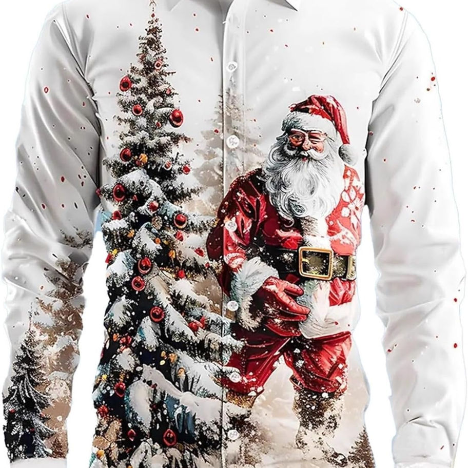 Camisas de Navidad para hombre, de manga larga, con botones, camisa de vestir n