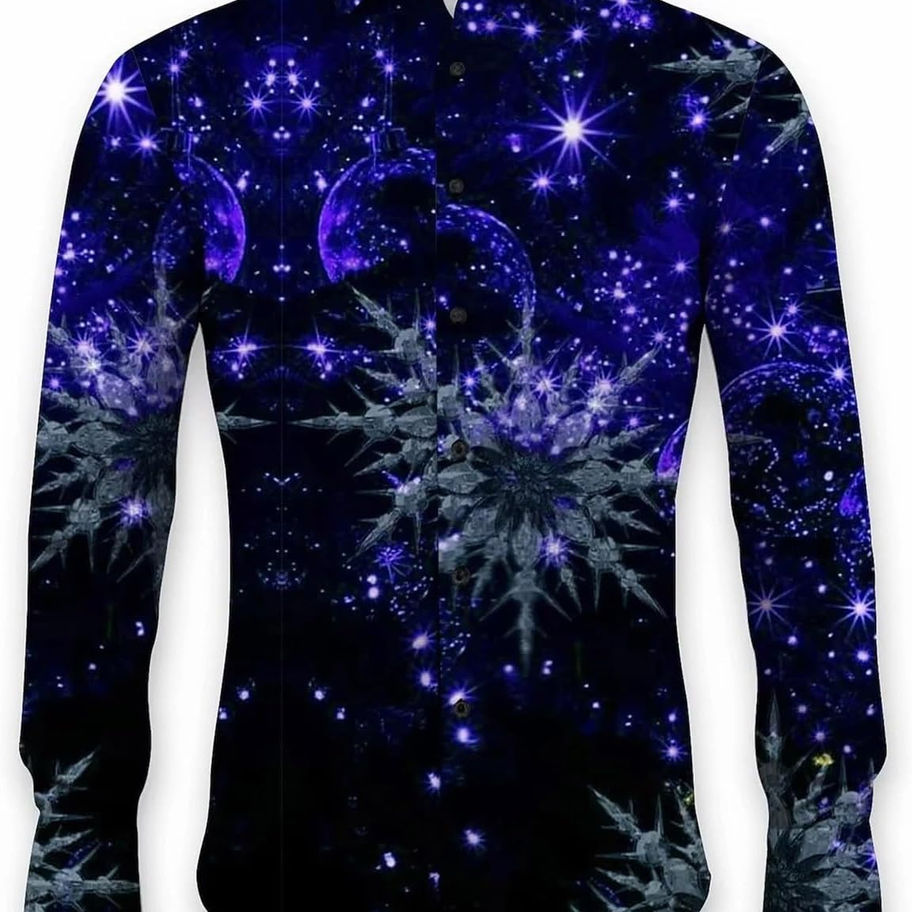 Patrones temáticos de Navidad: camisas de Navidad con botones para hombres con renos 3D, Papá Noel, corona, copo de nieve, etc. Camisas de Navidad para parejas perfectas para fiestas de Navidad, reuniones familiares, fiestas temáticas, cumpleaños, alegría festiva, etc