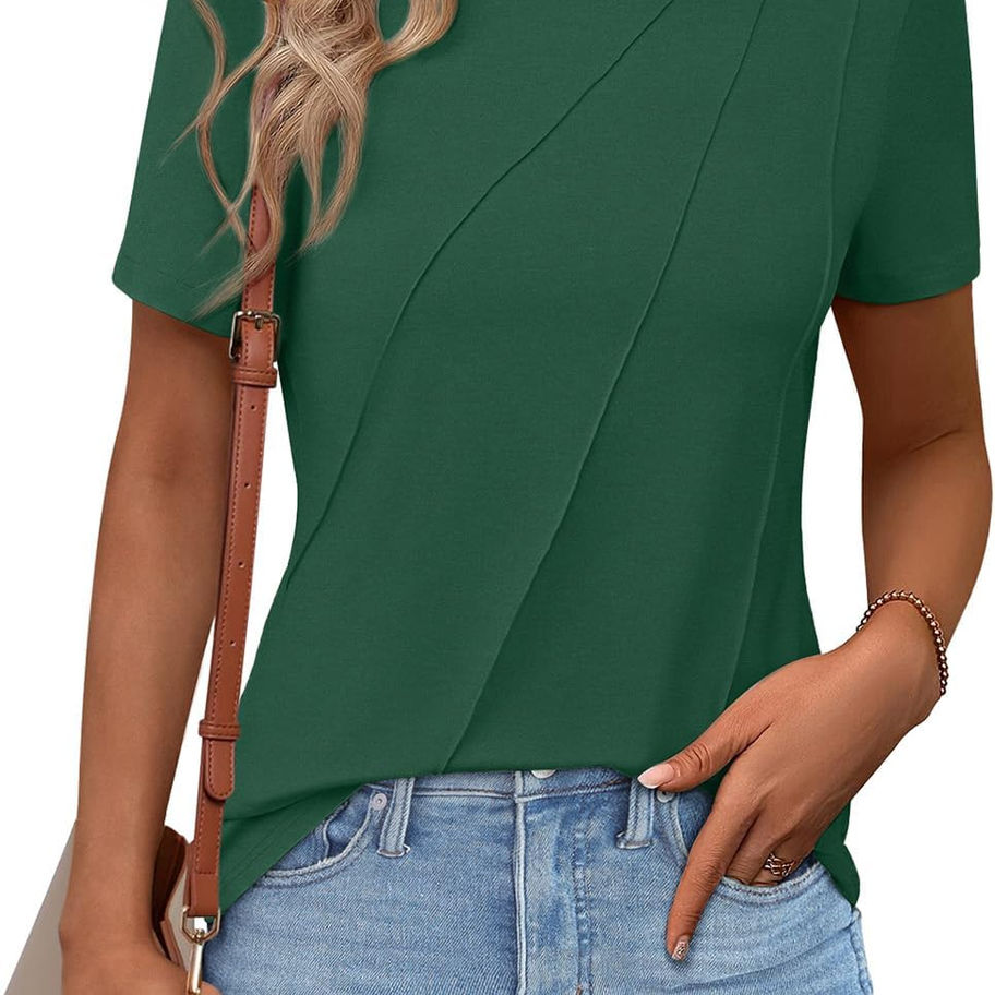 Camisetas de manga corta plisadas con cuello redondo para mujer, ajuste holgado