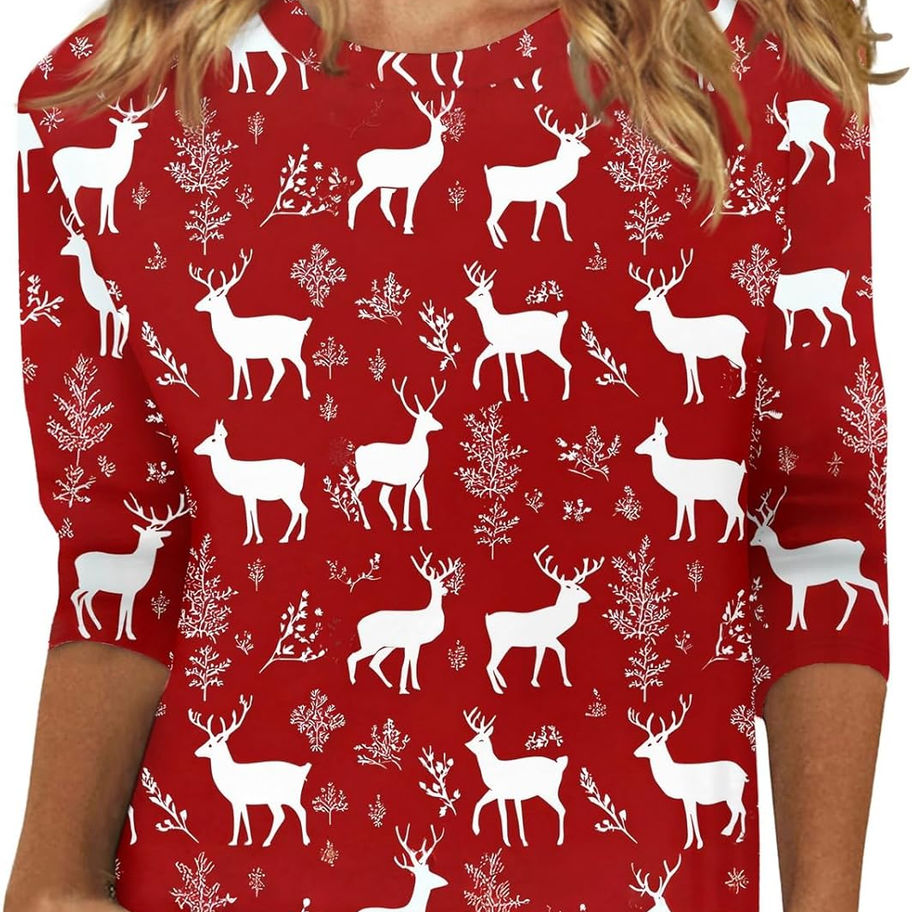 Comodidad y ajuste premium: hecho de tela suave y transpirable con mangas de 3/4 de longitud para un uso versátil de temporada. El corte relajado pero favorecedor proporciona comodidad durante todo el día, ya sea que estés asistiendo a fiestas de vacaciones, reuniones familiares o acogedoras noches de cine de Navidad.