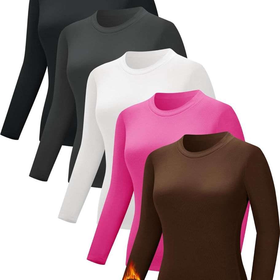 CE' CERDR Paquete de 3/5 camisas térmicas de manga larga para mujer, cuello red