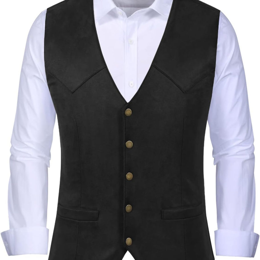 Chaleco de cuero de ante para hombre, estilo vintage, estilo vaquero, chaqueta