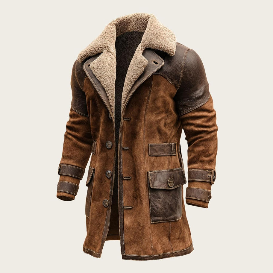Chaquetas occidentales para hombre, chaqueta larga de ante con forro de sherpa,