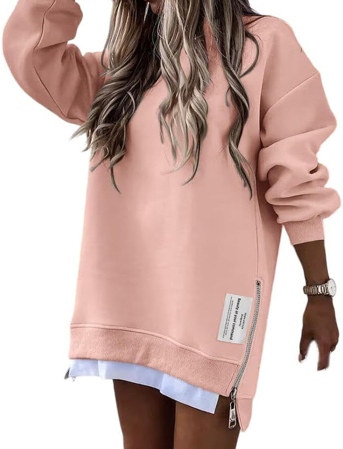 Características: la sudadera de gran tamaño para mujer cuenta con manga larga, hombros caídos, abertura con cremallera en el dobladillo que proporciona comodidad ajustable y un aspecto único