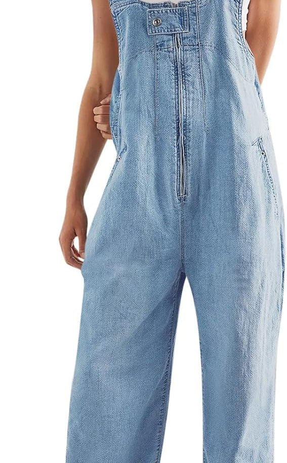 Cicy Bell Overol de mezclilla casual para mujer, pierna ancha, sin mangas, con