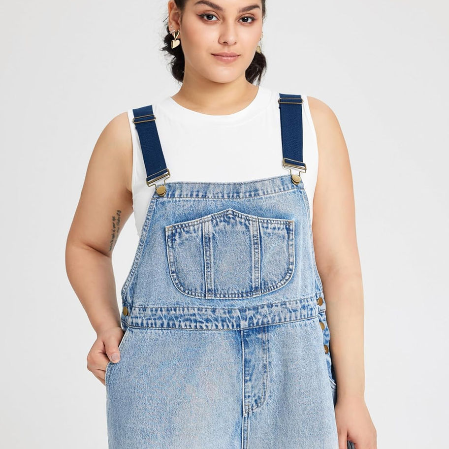 CIDER Overol de mezclilla para mujer, talla grande, pechera, pierna ancha, corr