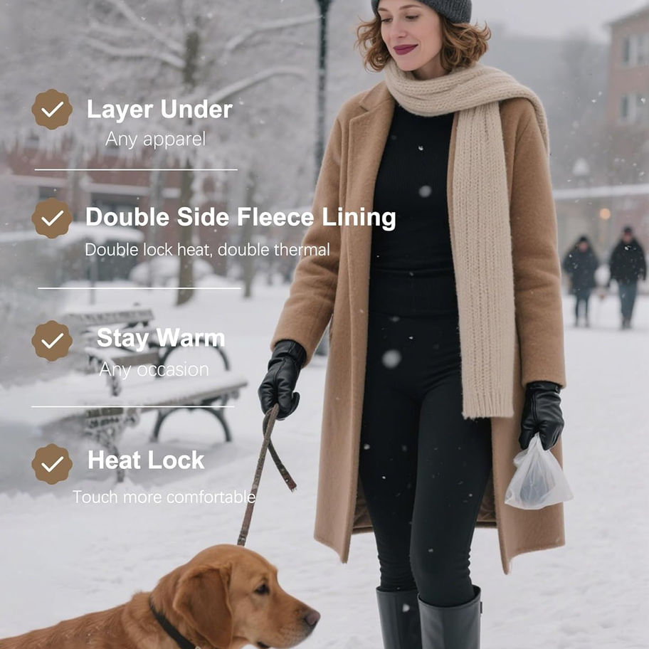 Doble bloqueo de calor: forro polar de doble cara. El interior cepillado de felpa atrapa el calor corporal; el exterior denso bloquea el frío. Esta ropa de invierno para mujer combina leggings con forro polar con camisas térmicas para mujer, ofreciendo comodidad durante todo el día para viajes, senderismo o descanso.