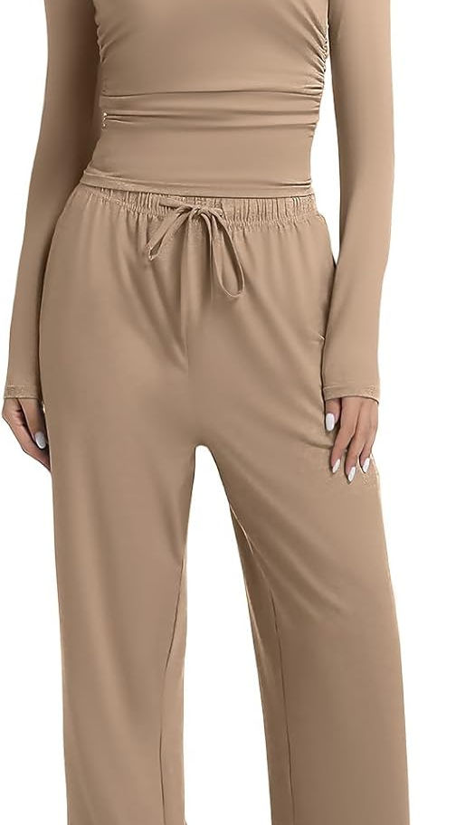 Detalles: este conjunto de 2 piezas para mujer es cómodo sin esfuerzo, con una fabricación súper suave y un aspecto perfectamente vivido. Características: tejido de jersey suave, ajuste relajado, camiseta de manga larga con detalle fruncido; pantalón de longitud completa con cintura alta y pierna ancha; cintura elástica; bolsillo lateral con costura. Este juego es tan versátil y puede ir a cualquier lugar contigo.