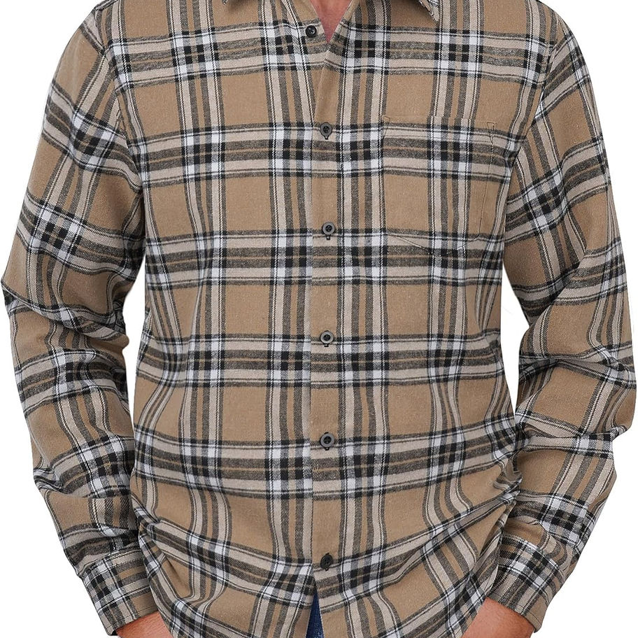 DISEÑO: Camisa de franela para hombre con manga larga, práctico bolsillo en el pecho, dobladillo curvo. El cuello extendido proporciona un aspecto clásico. Cada detalle se considera cuidadosamente para ofrecer estilo y funcionalidad