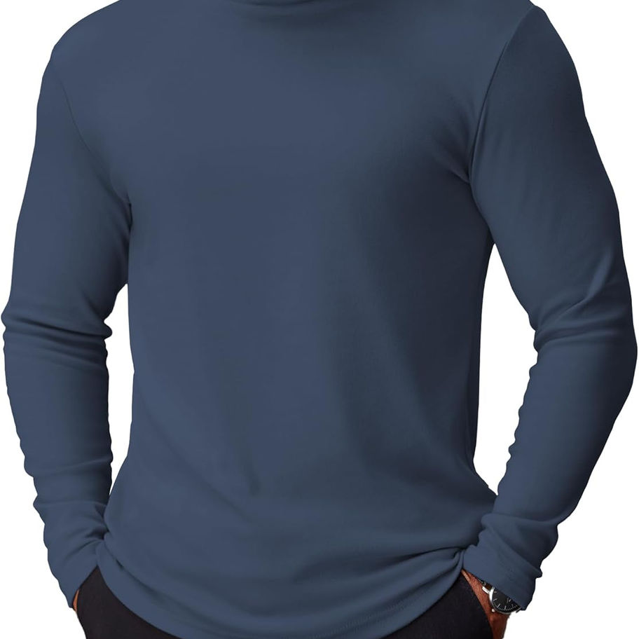 COOFANDY Camisetas básicas de manga larga con cuello alto falso para hombre, ca