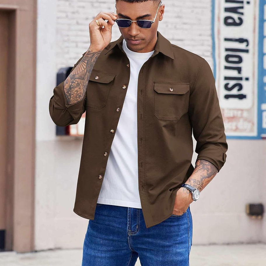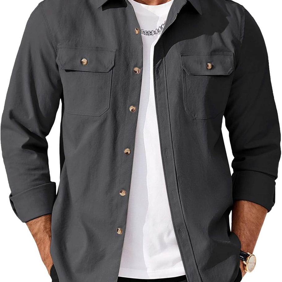 COOFANDY Chaqueta tipo camisa para hombre, casual, con botones, manga larga, li
