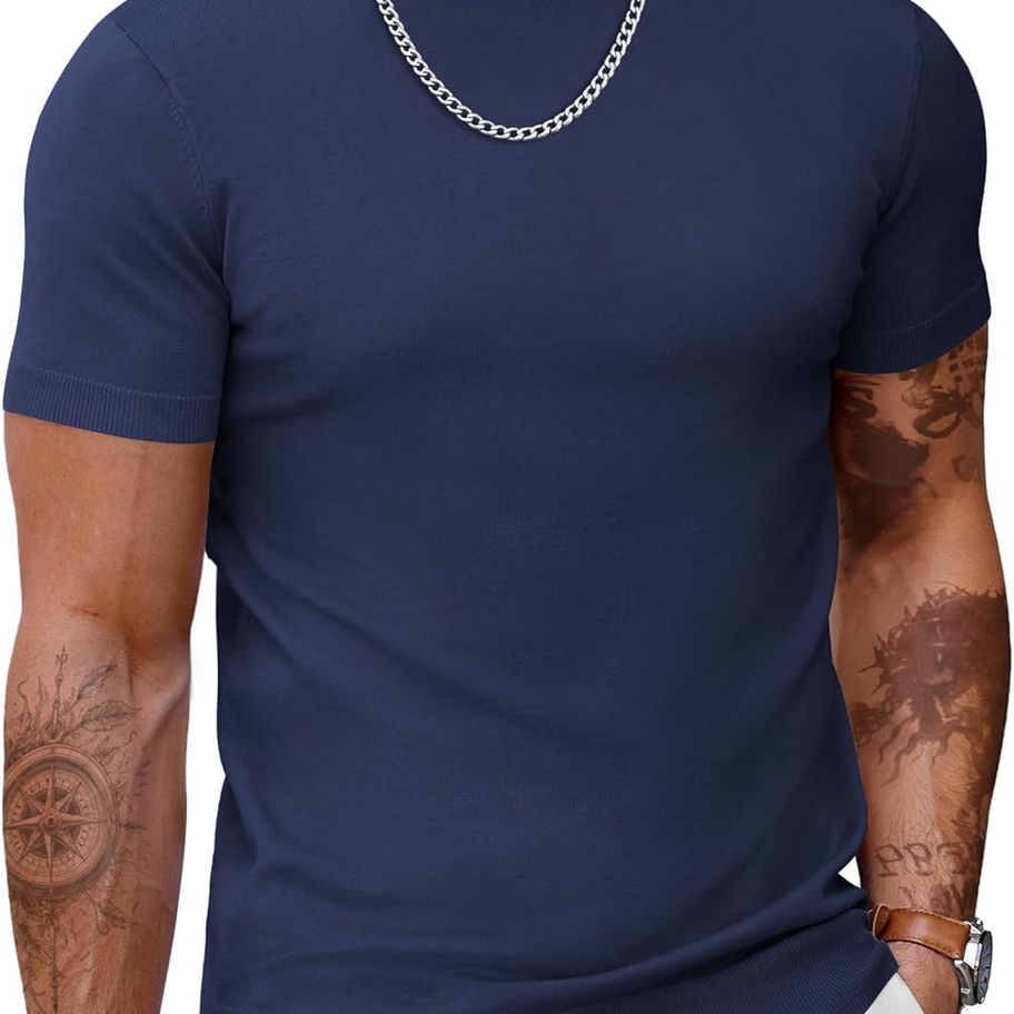 COOFANDY Mens Mock Turtleneck Sweater Short Sleeve Casual Dress Sweater Shirt S