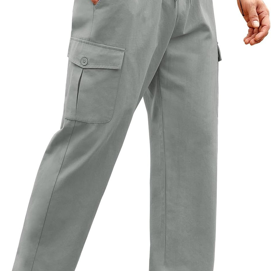 Pantalones cargo con múltiples bolsillos: un diseño clásico de pierna recta y cordón elástico en los pantalones cargo holgados para hombre, 2 bolsillos con solapa de carga y 2 bolsillos diagonales ofrecen almacenamiento para artículos personales.