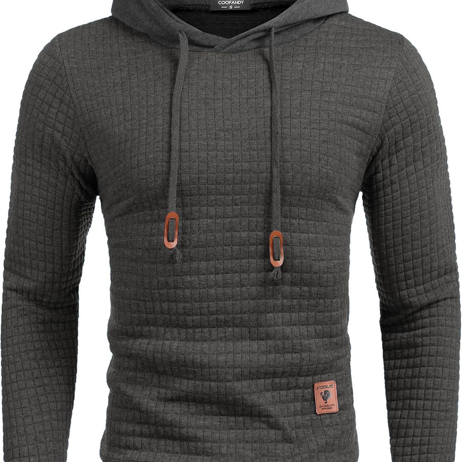 Diseño elegante: sudadera con capucha para hombre diseñada en patrón de gofre, color liso, mangas largas, puños elásticos acanalados, cordón ajustable y estilo simple y elegante.