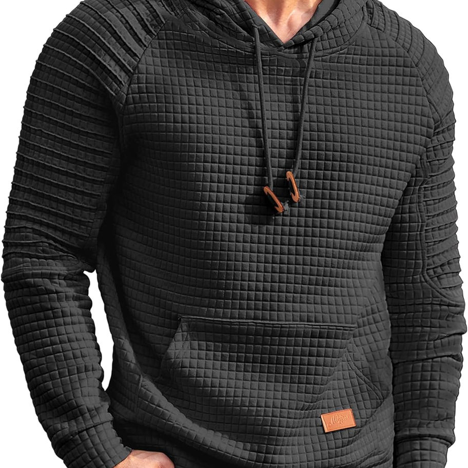 【Diseño único】Sudadera con capucha casual con patrón de gofre para una textura visualmente llamativa, color sólido, manga larga plisada, con cordón ajustable y bolsillo frontal tipo canguro. Simple y elegante para el uso diario.