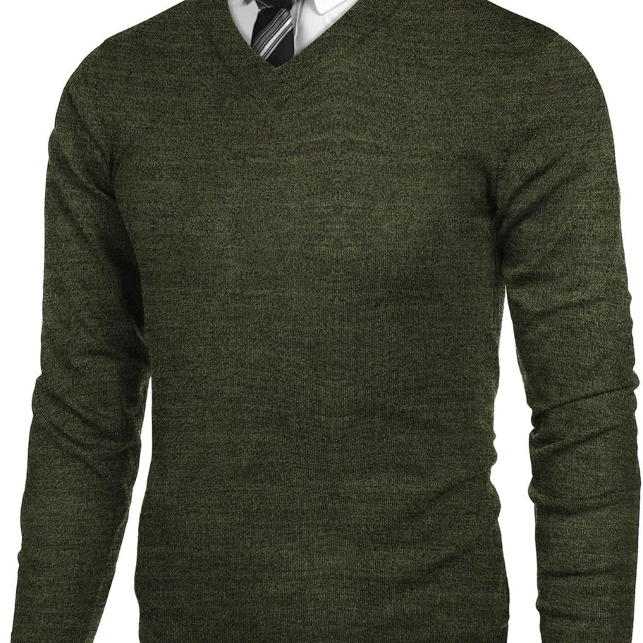 COOFANDY Suéter de punto con cuello en V para hombre, manga larga, ajustado, su