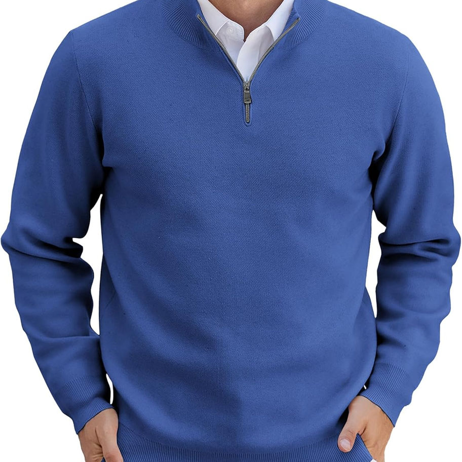 Ajuste delgado: suéter clásico para hombre con cuello de cremallera de un cuarto de metal, ajuste delgado, puños y dobladillo acanalados, grosor moderado, disponible en colores sólidos y mezclados, un suéter imprescindible en el armario de primavera, otoño e invierno, nunca pasa de moda